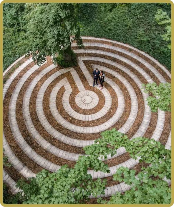 A keresztény kultúrában az ösvény elsősorban az üdvözüléshez vezető út szimbóluma lett. A zarándokok bűneik feloldozásáért esdekelve járták végig a katedrálisok kövezetén ábrázolt útvonalát. Az Arborétumban található, egy bejárattal és középponttal rendelkező labirintus a leghosszabb úton vezeti végig az útrakelőt. A bevezető út állandó ki-be lüktetése, a középpont megtapasztalása, a középpontban kialakított határozott irányváltás, majd a kivezető út ismételt lüktetése a labirintust belső, beavatási útvonallá teszi. Lehet a találkozás útja önmagunkkal, tévedéseinkkel, halálunkkal és újjászületésünkkel, a megbocsátással és az újrakezdés lehetőségével.